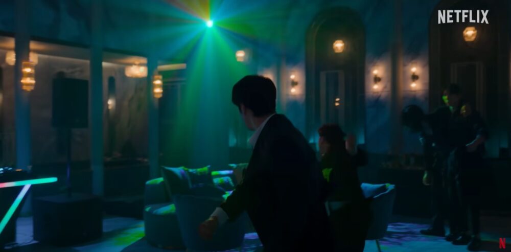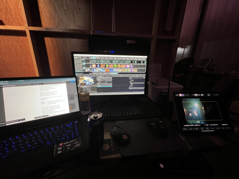 네이티브는 16,000안시 프로젝터 2대를 사용하여 클럽 씬의 영상효과를 운영하였습니다. 촬영 현장에서 카메라 앵글에 따라 프로젝터의 위치와 각도를 전동 조절하는 가변 플랫폼을 직접 제작하고 현장 운용하였습니다. 영상 소스는 미디어 아티스트의 영상 소스를 바탕으로 재생하였습니다.